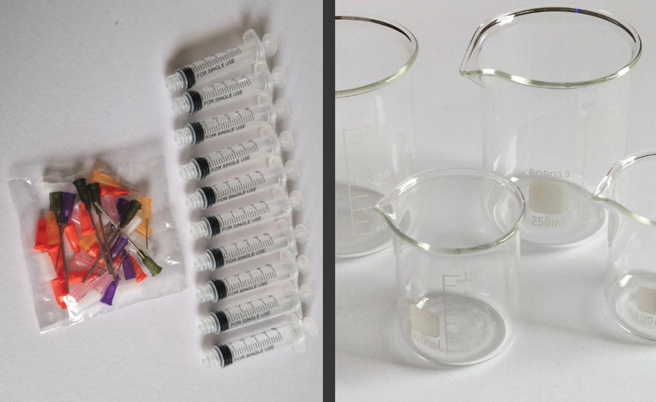 I also bought some Borate Glass graduated beakers, syringes, blunt needles and a box of 100ml sealed bottles from Amazon.