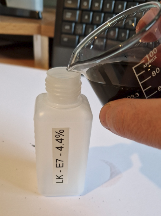 So as to not lose track of completed bottles, my first task was to make sure each bottle is labelled: from E1-100% (undiluted) to E7-4.4%